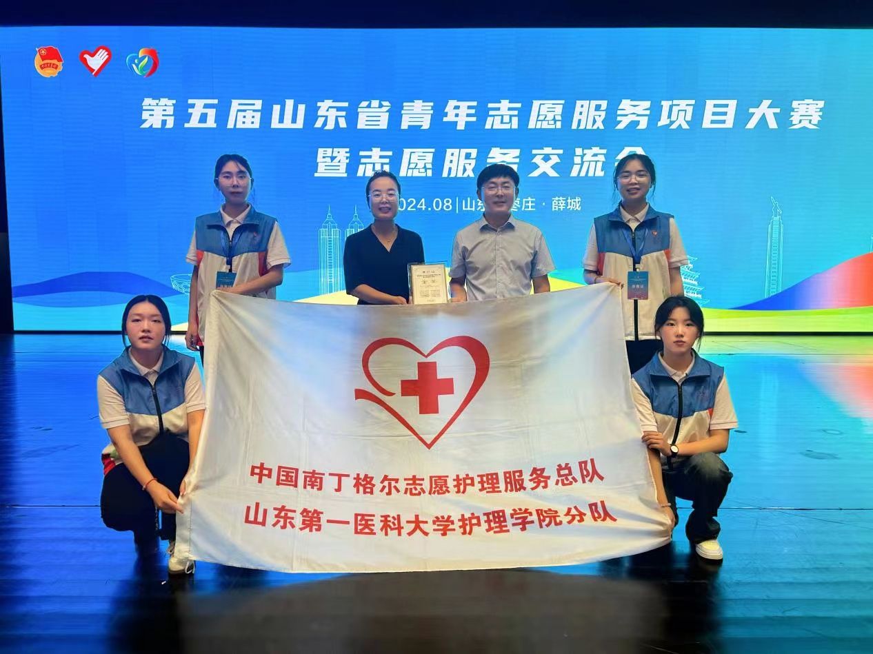 8月7日—9日,第五届山东省青年志愿服务项目大赛暨志愿服务交流会在枣庄召开,护beat365官方网站“V爱守护”南丁格尔为老助医志愿服务项目从初赛1802个项目中脱颖而出,冲进决赛;在决赛200个项目中,一路闯关夺隘,勇夺金奖,成为全省35个金奖项目之一,是全校三个入围决赛项目中唯一金奖。