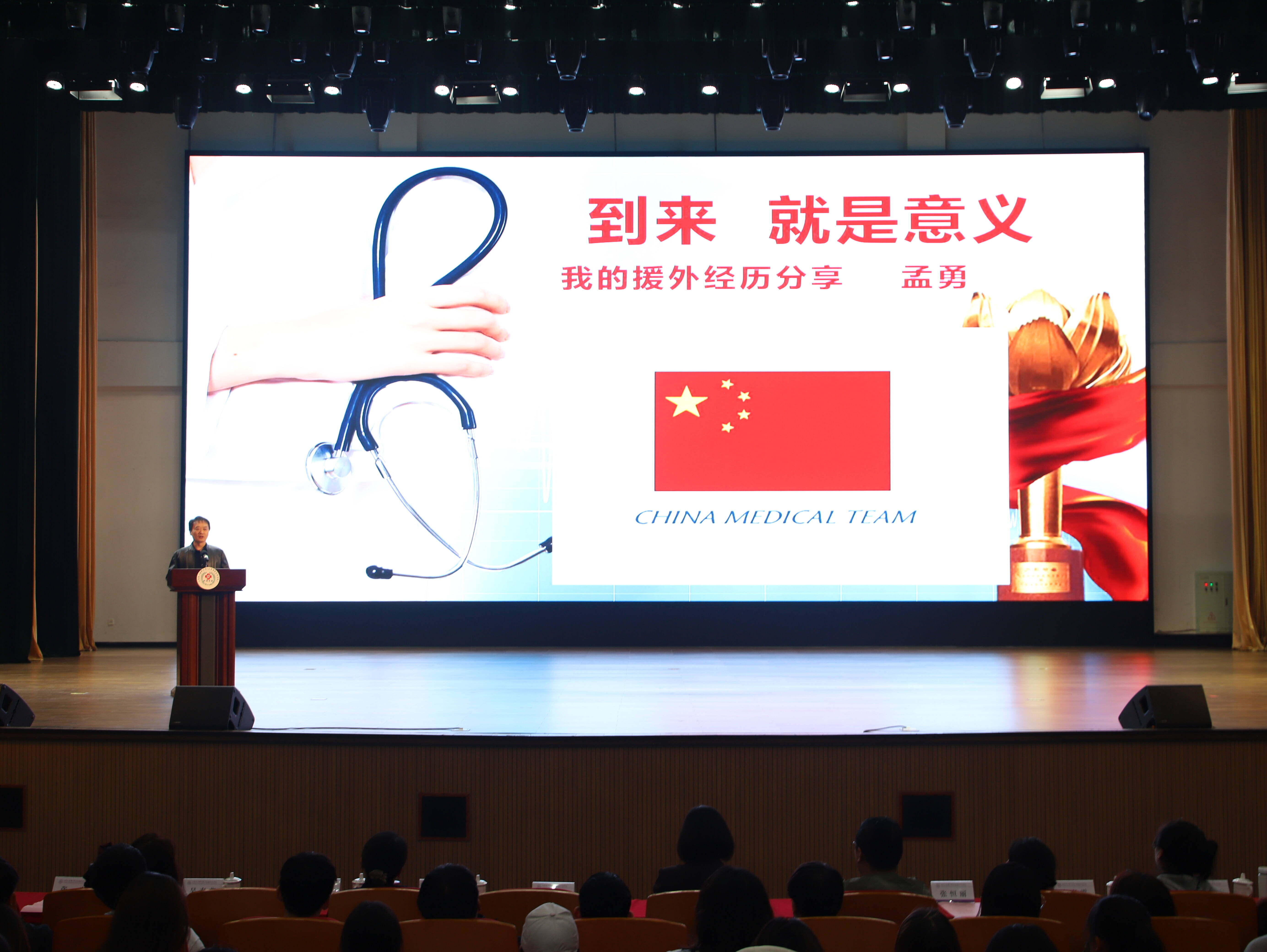 校(院)“青年讲师团”成员、第二附属医院麻醉科副主任医师孟勇以“到来就是意义—我的援外经历分享”为题,向现场师生介绍了中国援外医疗队的发展历程,深刻诠释了“不畏艰苦、甘于奉献、救死扶伤、大爱无疆”的中国援外医疗队精神。