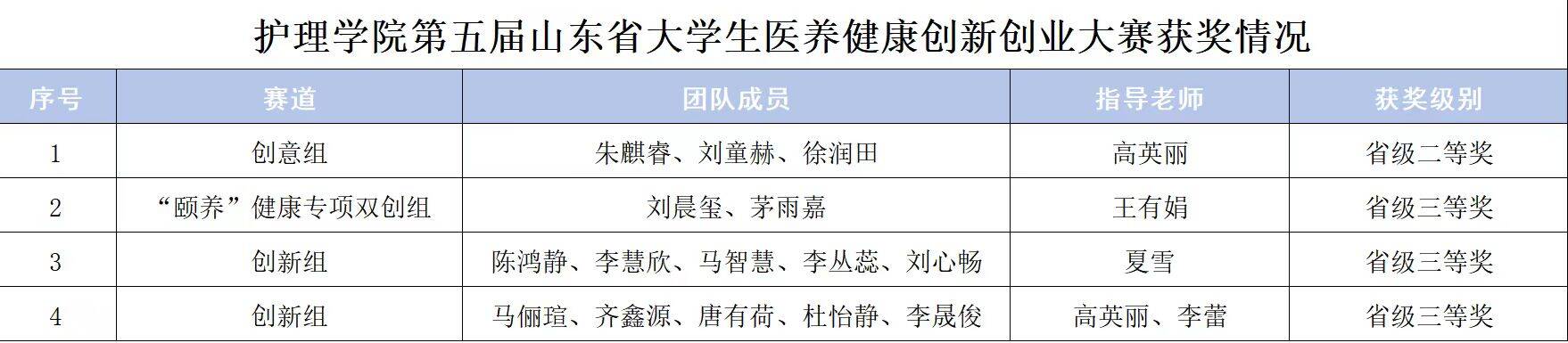 近日,“文旅杯”第五届山东省大学生医养健康创新创业大赛决赛圆满落幕。护理学子积极参与,认真备赛,在激烈的角逐中脱颖而出,成功斩获二等奖1项、三等奖3项。