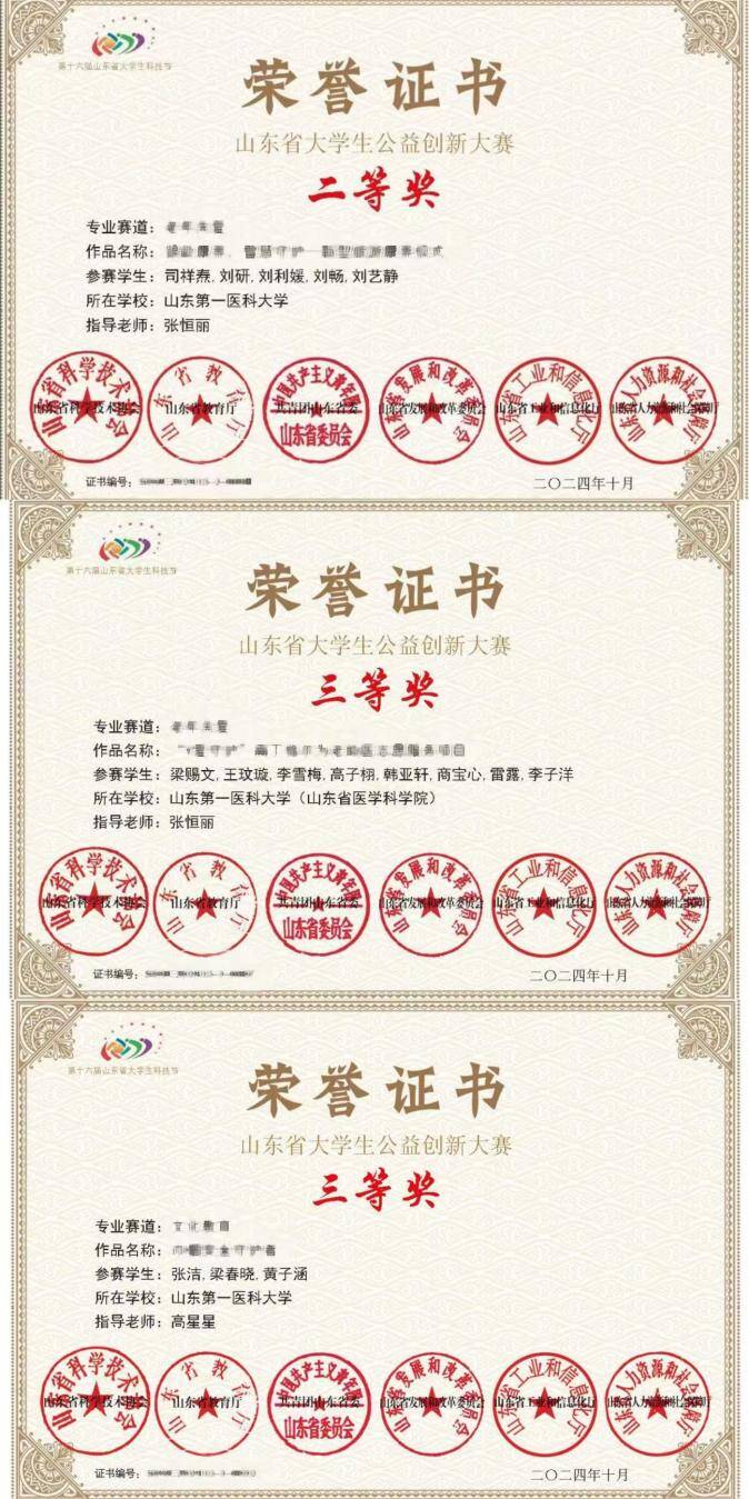 在由济南市科学技术协会、山东大学、济南管理科学研究会承办的山东省大学生公益创新大赛中,我院共三项作品获奖,其中司祥焘等五名同学组成的团队获得二等奖,梁赐文等八名同学组成的团队、张洁等三名同学组成的团队分获三等奖。
