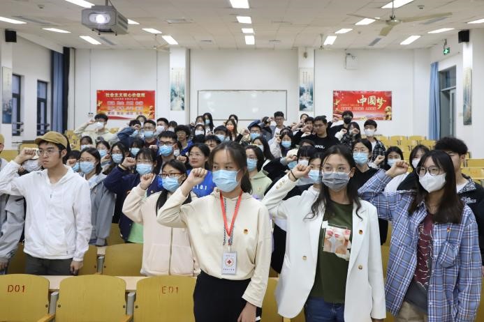 活动在庄严的国歌中拉开帷幕,团员们集体观看中国共青团团史纪录片,回顾中国共青团的历史,增强团员对百年团史的了解,坚定团员理想信念,提高团员的责任感与使命感。
