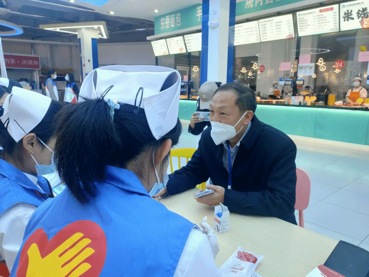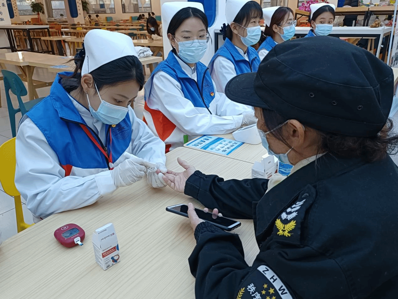 为进一步帮助老师和后勤各方面服务人员做好值守期间的健康监测,为大家解除闭环管理后的自身健康管理提供参考,11月13日,护beat365官方网站学工党支部领航员、党委书记张延玲领航学院南丁格尔志愿服务队以“学习二十大,‘医’路永相随”为主题,在东岳厅开展测量血压血糖的健康体检志愿服务活动。校(院)党委委员、副校(院)长张贤雷莅临活动现场指导。