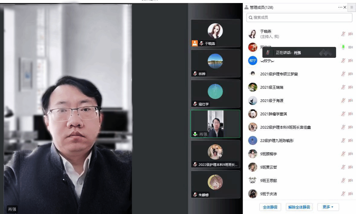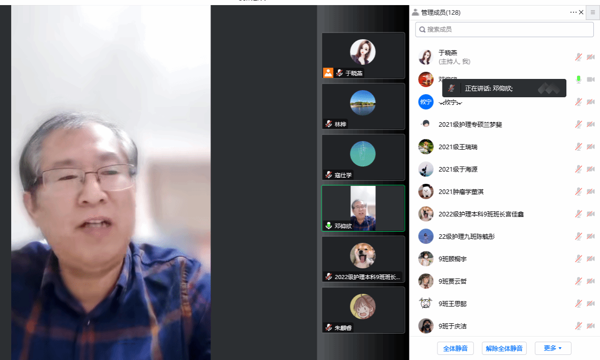 肖强阐述了校(院)党委开展“领航工程”的目的意义,他指出,在疫情防控的攻坚时刻,全体党员要提高政治站位,凝心聚力,打好疫情保卫战,同时为支部联系班级学生科普疫情防控知识、讲好抗疫故事,齐心抗疫。内科党总支书记邓仰欣希望学生们积极应对疫情下学习生活状态的变化,对不良的社会舆论要有鉴别能力,弘扬正能量,同心抗疫,共建美好家园。