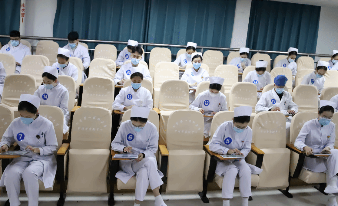 25日上午,比赛正式进行。本次比赛包括理论考核和技能考核两个环节。理论考核参照国家护士执业资格考试规定的考核范围,通过OSCE考试系统,重点考察学生分析与解决临床问题的能力;实践操作比赛实行三站式客观结构化考核。为体现“公平、公正、公开、透明”的原则,赛前裁判组对照项目评分细则逐项统一标准,保证评判的一致性,参赛选手系统随机抽号进入相应站点,裁判与选手之间为双盲,避免了人为因素的干预和影响。
