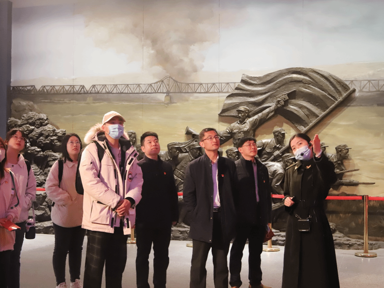 在济南战役纪念馆内,大家跟随讲解员的脚步,依次参观了序厅、“和战博弈 齐鲁硝烟”“运筹帷幄 剑指济南”“厉兵秣马 蓄势待发”“八天八夜 鏖战古城”“战略决战 凯歌行进”“接管济南 泉城新生”“烈士忠魂 日月同辉”等八个展区。一幅幅真实影像,一组组还原场景,一份份详实史料,一件件战时老物件,重现了当年济南攻坚战激烈的场面,展现了先烈们抛头颅、洒热血的战斗历程和为新中国而奋斗的丰功伟绩。先烈们艰苦奋斗、顽强拼搏、以身殉国的气概和品质引起大家的强烈共鸣。