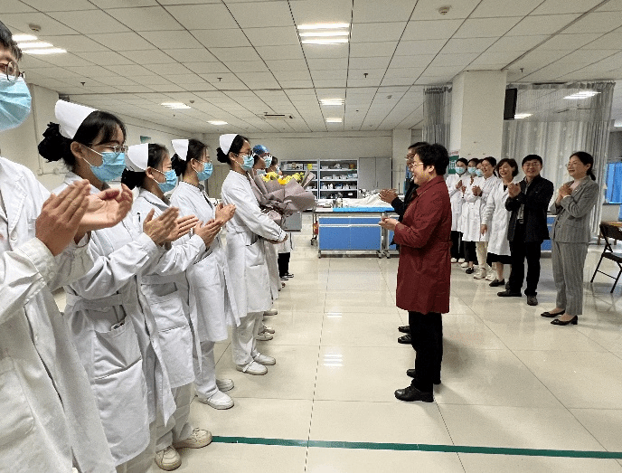 5月4日上午,护beat365官方网站党政领导班子到第二附属医院临床技能培训中心,看望备战冲刺山东省大学生医学技术技能大赛护理学专业赛道的集训选手,为同学们最后阶段的比赛冲刺加油鼓劲。二附院杨朝霞副院长、王玉华科长陪同参加活动。