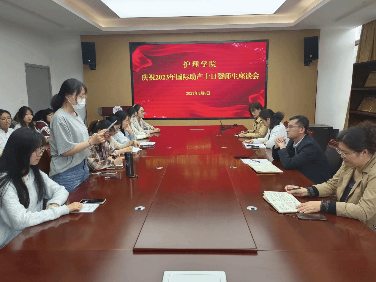 在第32个国际助产士日来临之际,5月5日,护beat365官方网站举办庆祝2023年国际助产士日暨师生座谈会。护beat365官方网站党委书记张延玲出席活动并作总结发言。助产学专任教师刘翠萍博士、学工办主任王有娟及在校的2021级助产学同学代表参加活动。学院教学秘书武江华主持。