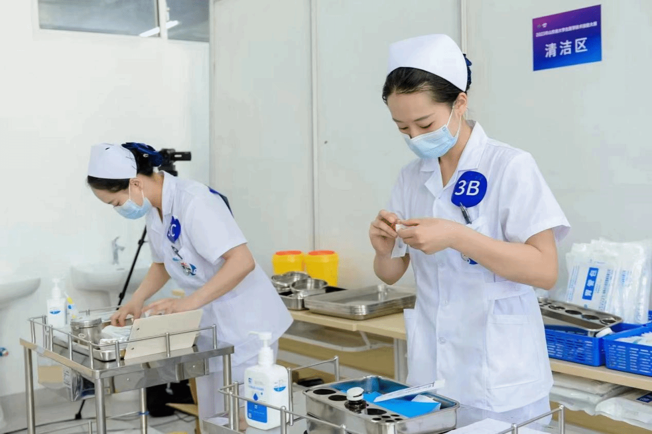 大赛重点考察护理学类专业领域的基本理论、基本知识、基本技能,强调思维能力、应变能力、医学人文关怀与团队合作等综合素质,重视健康教育。比赛包括综合笔试和技能考试,设A、B两个平行赛道。其中技能考试为“多站式”考核,涵盖内、外、妇、儿、急救、健康教育等考点及相关知识。