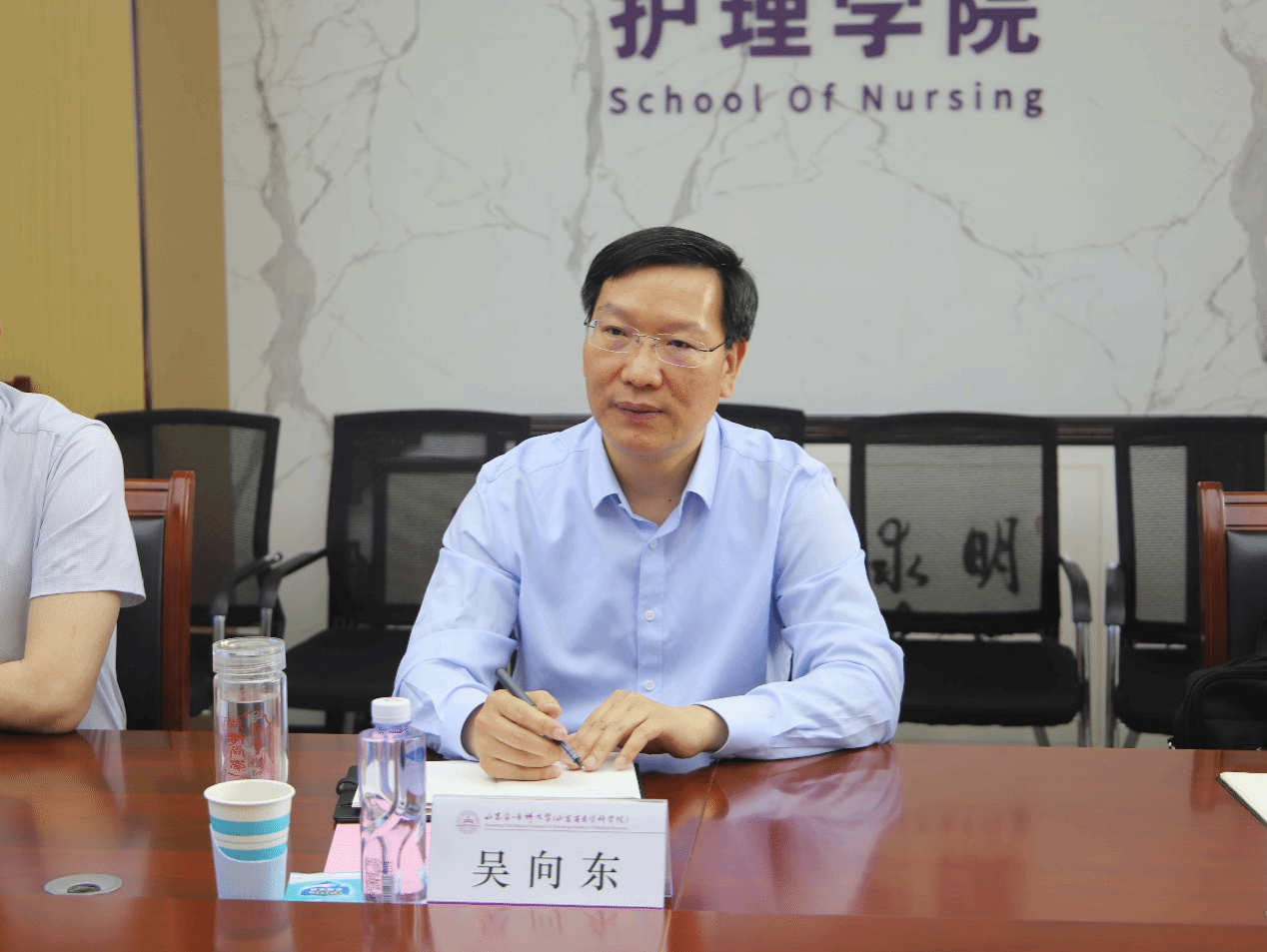 5月25日,校(院)党委副书记吴向东到护beat365官方网站调研指导学院工作和学习贯彻习近平新时代中国特色社会主义思想主题教育开展情况。校(院)宣传部常务副部长张峰,党委办公室副主任、医养战略研究院常务副院长王省陪同调研。学院党委书记张延玲作工作汇报,院长张爱华主持会议。
