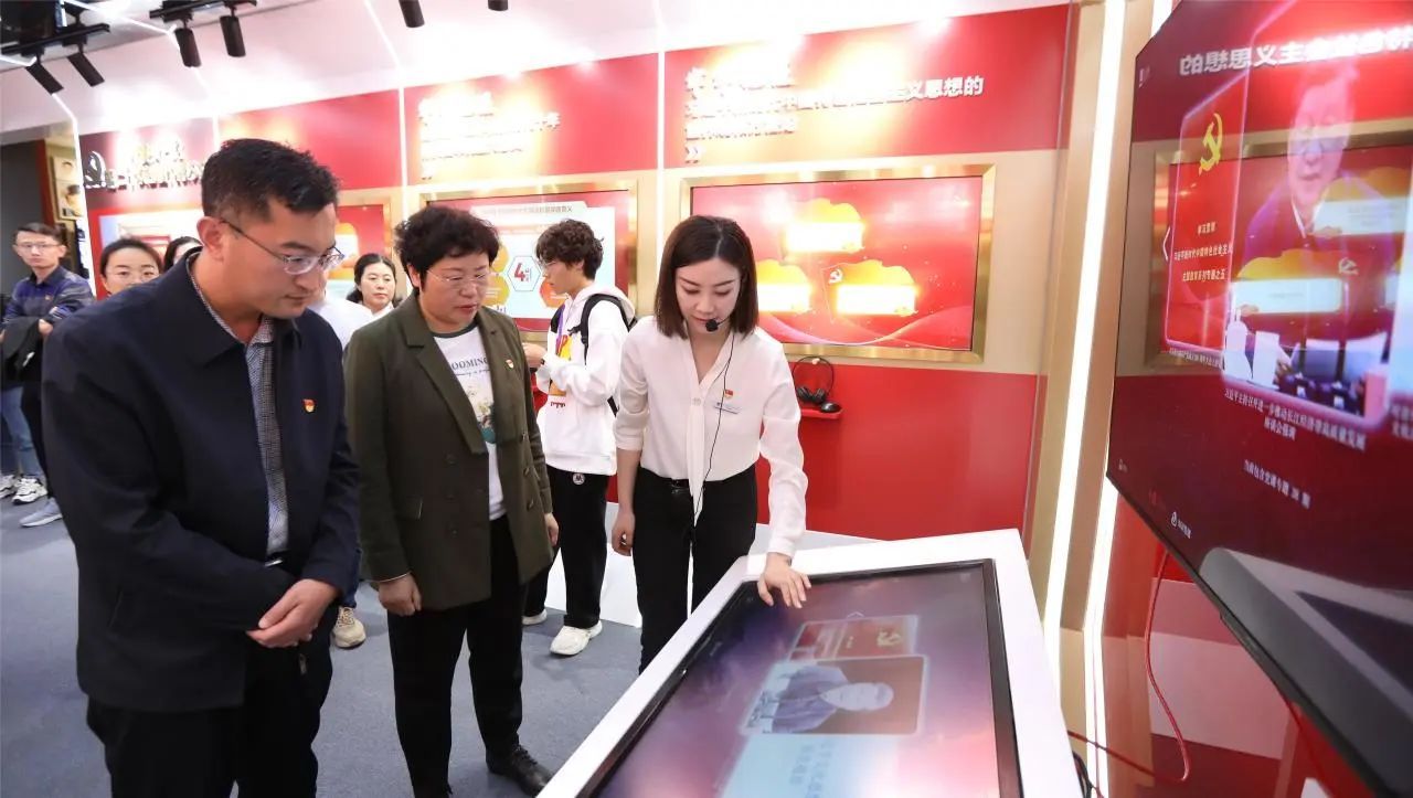 在“党的二十大精神学习教育厅”,通过人民网智慧党建内容服务云平台和电子触摸屏,大家体验了沉浸式、互动式的学习。
