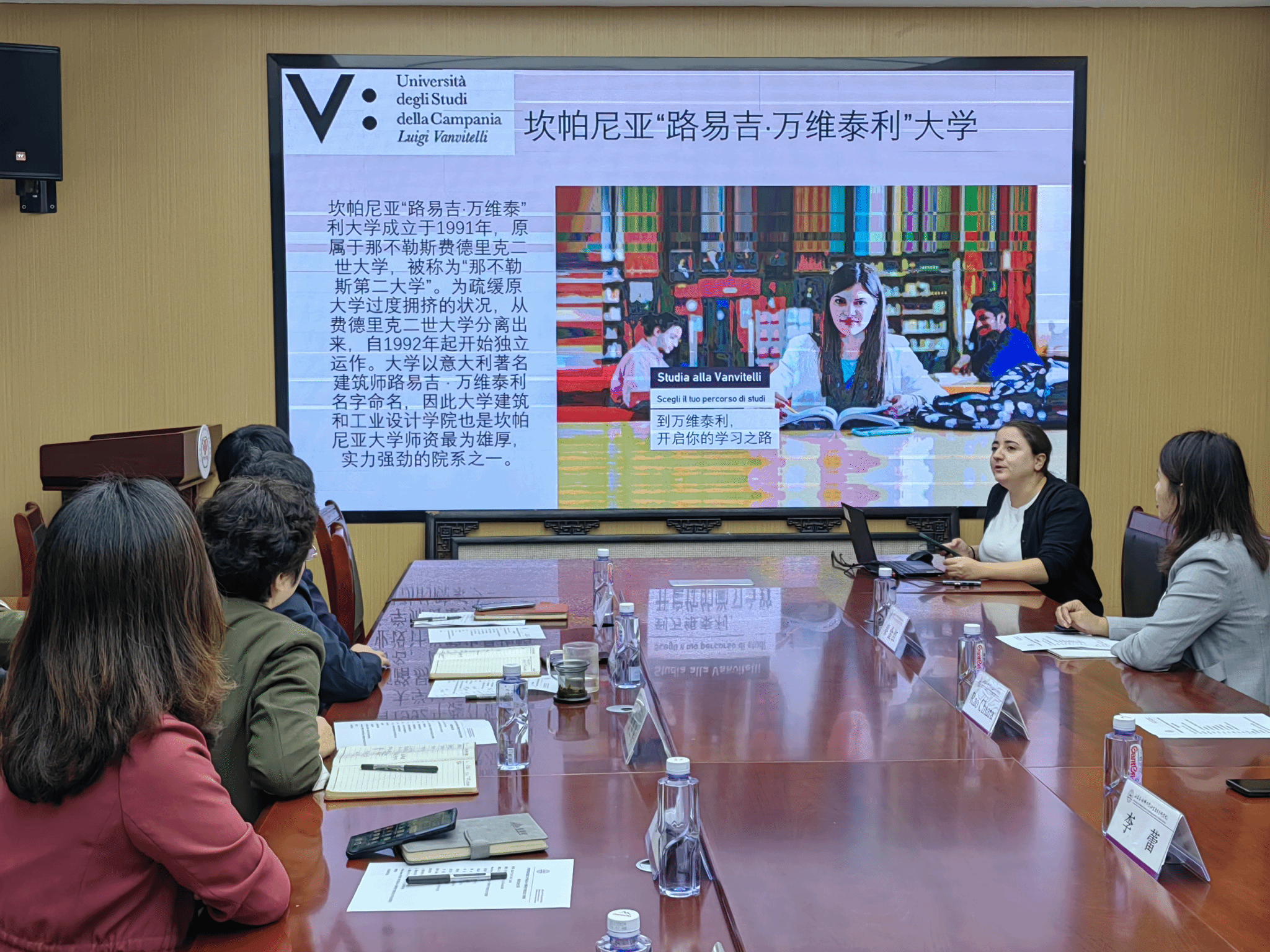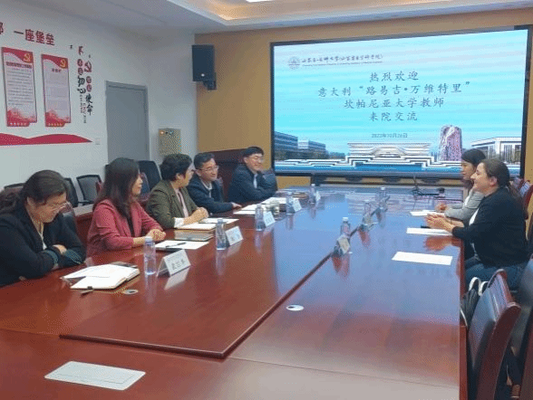 10月26日下午,护beat365官方网站组织举办与意大利“路易吉·万维特里”坎帕尼亚大学教师Rao Chiara的交流会。学院院长张爱华、党委书记张延玲、对外合作交流部科长秦金红等参加活动。