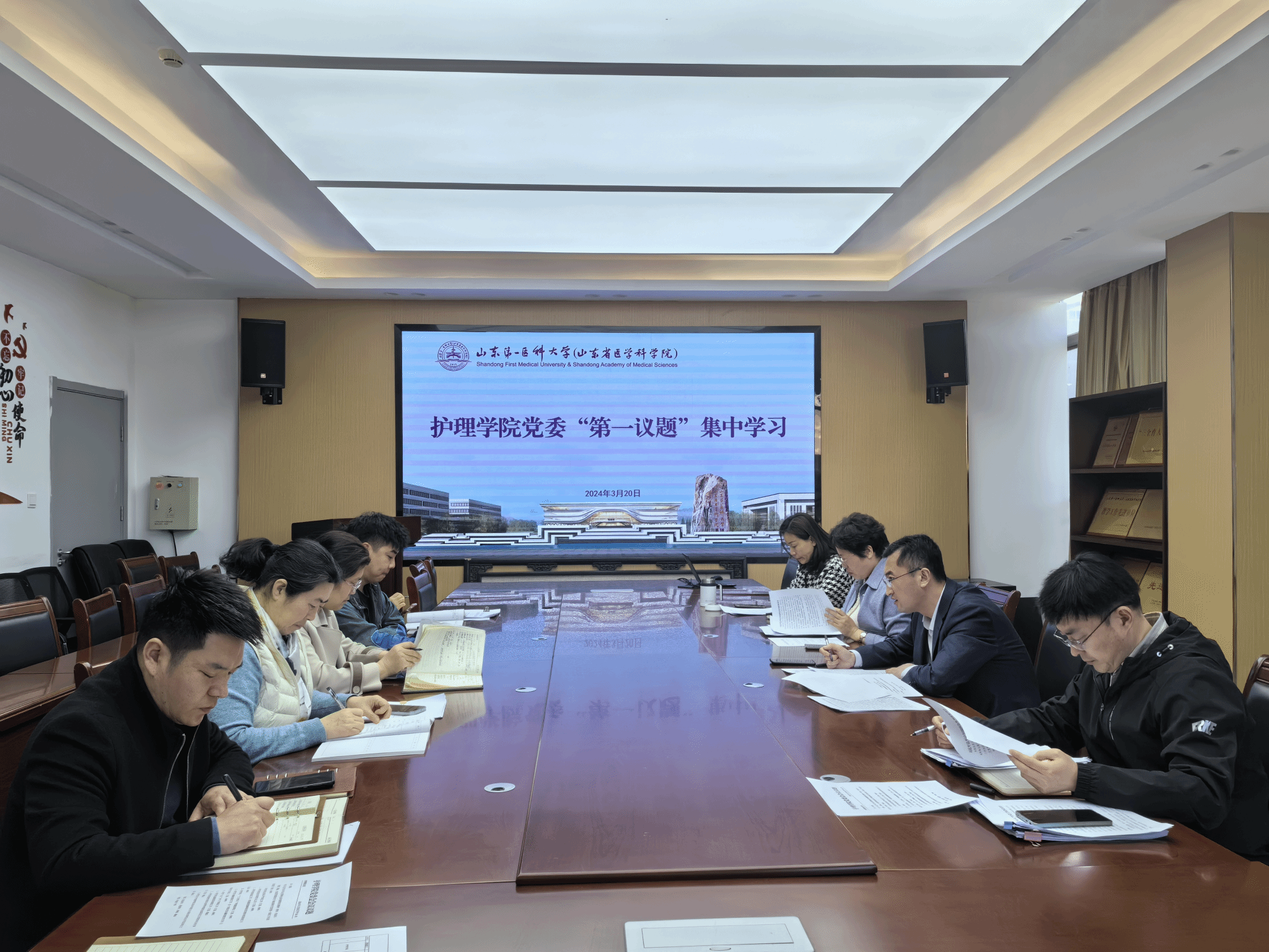 3月20日,护beat365官方网站党委“第一议题”集体学习习近平总书记全国两会期间系列重要讲话和关于做好新时代党的统一战线工作的重要思想。学院党委书记张延玲主持学习。