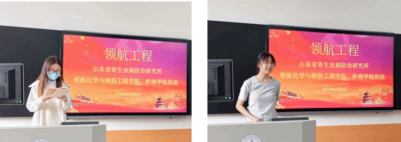 为贯彻落实校(院)党委深入开展“领航工程”的工作要求,引导大学生传承优秀文化,提升思想政治教育,5月29日,山东省寄生虫病防治研究所行政党支部、内科党支部与护beat365官方网站2022级护理学本科8班学生开展领航活动。省寄防所党委书记、所长宋巧霞以普通党员身份参加活动,护beat365官方网站党委书记张延玲主持活动。