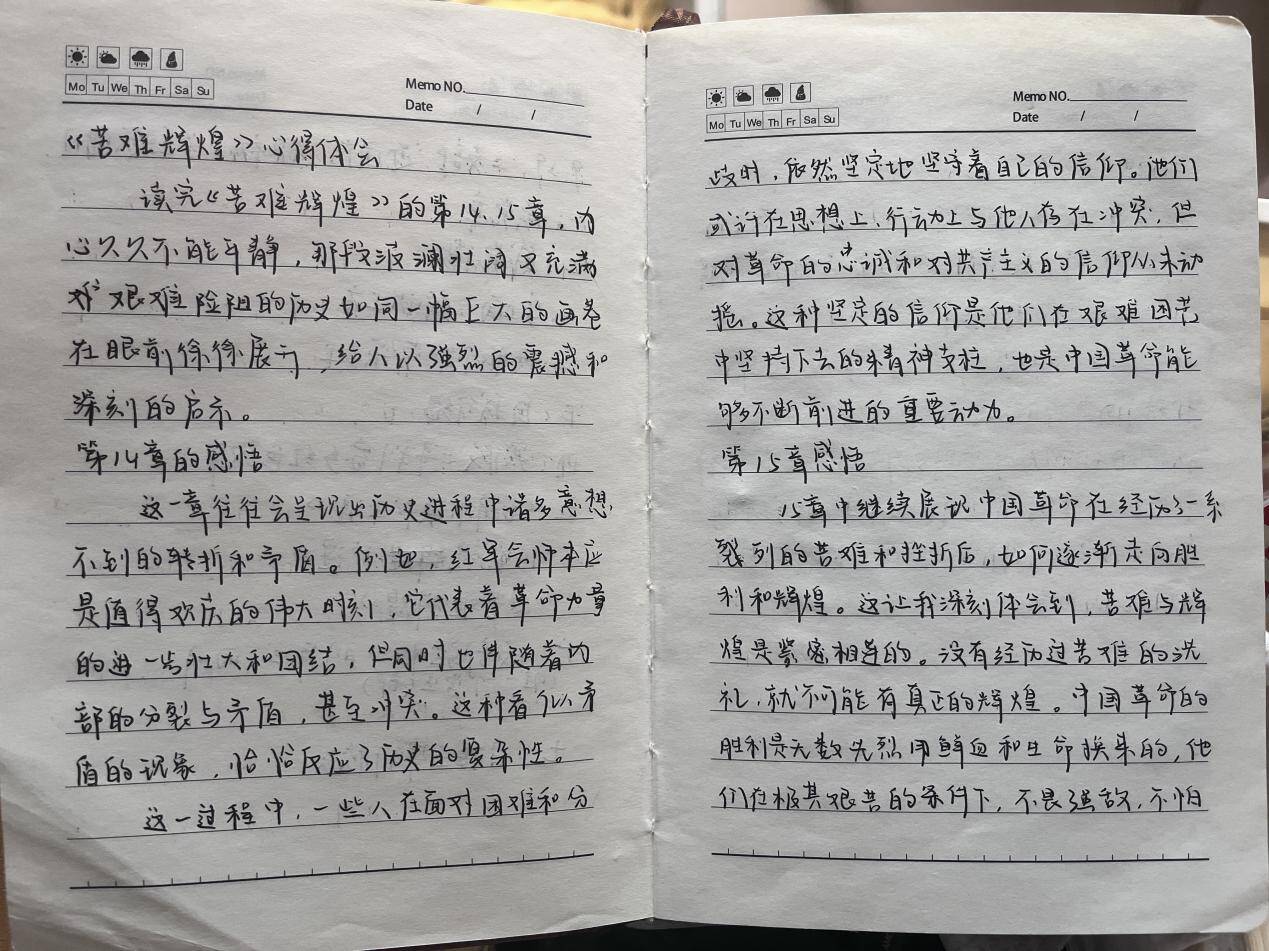 本次活动由支委会和支部五名党员组成评分小组,对支部党员的学习笔记进行展评,主要从记录是否详实、条理是否清晰、字迹是否规范工整、个人心得体会是否具备学习深度等方面对大家的学习笔记进行集中打分,最终评选出优秀笔记9份。