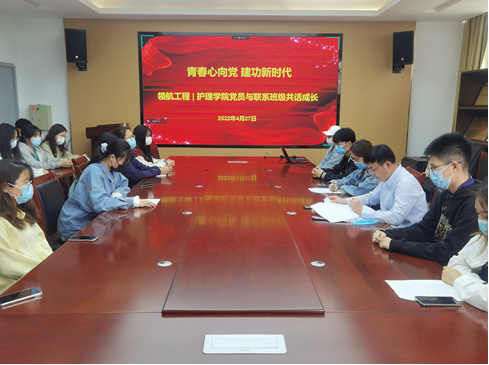 4月27日,学工党支部党员、学院党委副书记林桦与联系班级——2019级护理学本科1班、2班线上线下相结合开展“青春心向党 建功新时代”领航工程主题交流会。会上,大家集体学习了习近平总书记在中国人民大学考察时的重要讲话精神,教育引导同学们学思践悟,结合当前疫情防控形势和需要,积极为抗疫做贡献。同学们进一步提高了担当作为的思想行动自觉。