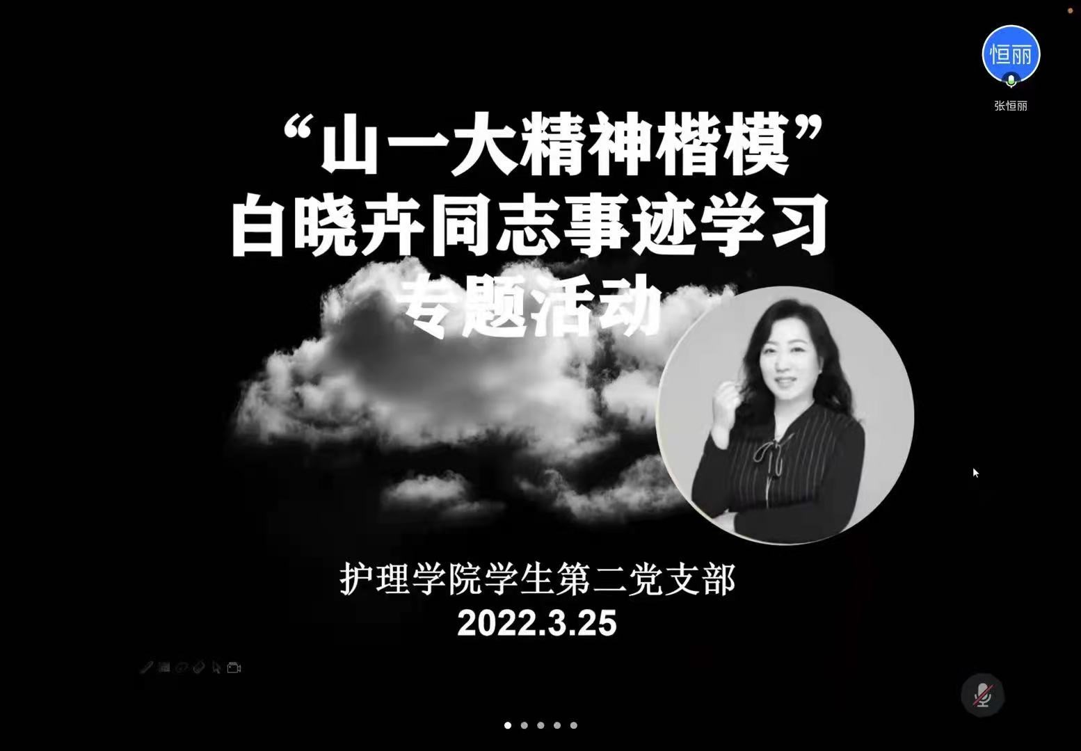 近日,为深入贯彻《中共beat365官方网站(山东省医学科学院)委员会关于在全校(院)深入开展向白晓卉同志学习的通知》精神和要求,引导学院师生深学楷模精神,激发前进力量,护beat365官方网站各党支部以白晓卉同志为榜样,学先进、赶先进、当先进,采取多种形式迅速学习白晓卉同志感人事迹与崇高精神。