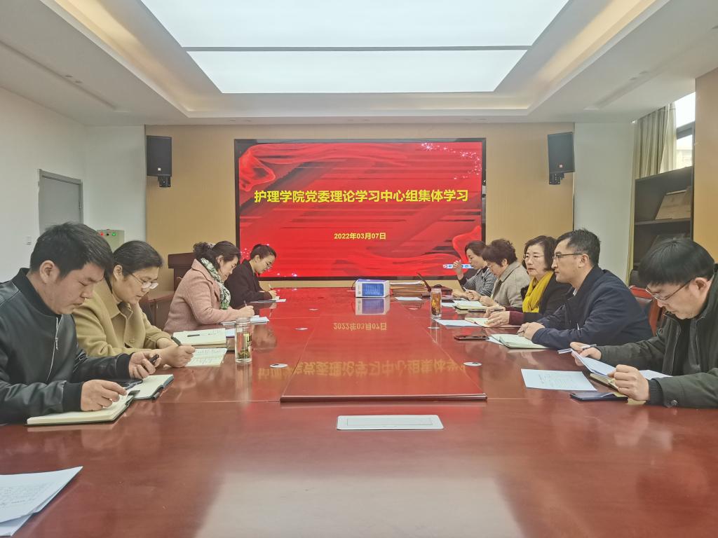 3月7日,护beat365官方网站党委理论学习中心组召开会议,集体学习校(院)2022年工作会议和2022年全面从严治党工作会议精神。学院党委书记张延玲主持学习。
