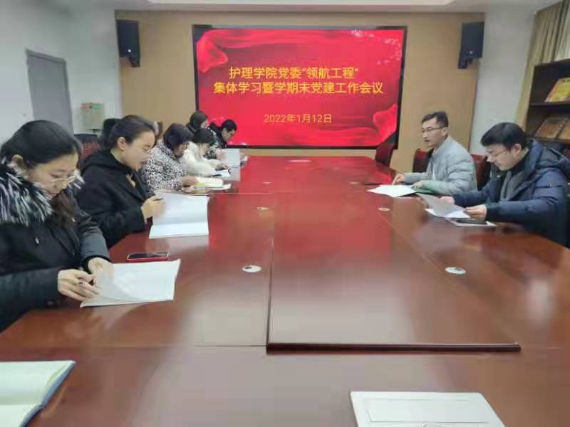1月12日,护beat365官方网站党委召开“领航工程”集体学习暨学期末党建工作会议,学习贯彻《beat365官方网站(山东省医学科学院)基层党支部联系学生班级“领航工程”实施方案》文件精神,安排部署学期末党建工作。学院党委书记张延玲主持会议。