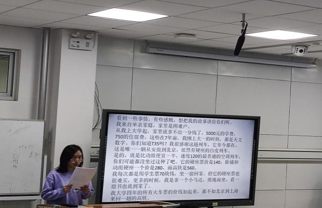 实践就业部干事贾亦菲同学针对前期汇总的有关问题进行了解答,周赟筱同学为在场同学朗诵了清华大学贫困生的“树洞”原文,从受助到助人,感受了清华“树洞”的温暖独白。李新凤老师希望同学们能努力学习,充实在校生活,让自己成长为一名德才兼备的社会主义合格建设者和可靠接班人。