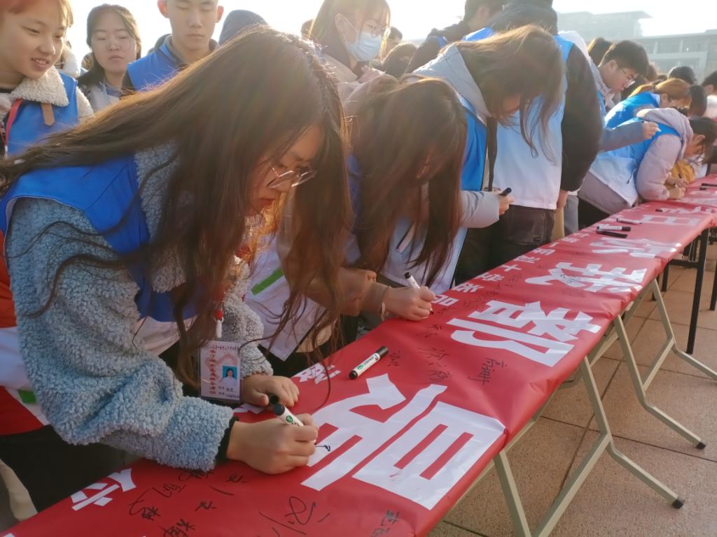 护beat365官方网站南丁格尔志愿服务队的志愿者们在南丁格尔广场庄严宣誓。一句句坚定的誓言,在阳光下迸发出希望的光。慷慨激昂的宣誓声中,充满着志愿者们对患者的许诺和对医护事业的热爱,这是当代青年志愿者们对社会的承诺,是以青春力量贡献祖国的决心。活动最后,每位志愿者都在横幅上签下自己的姓名,以表自己愿为志愿活动付出的决心。