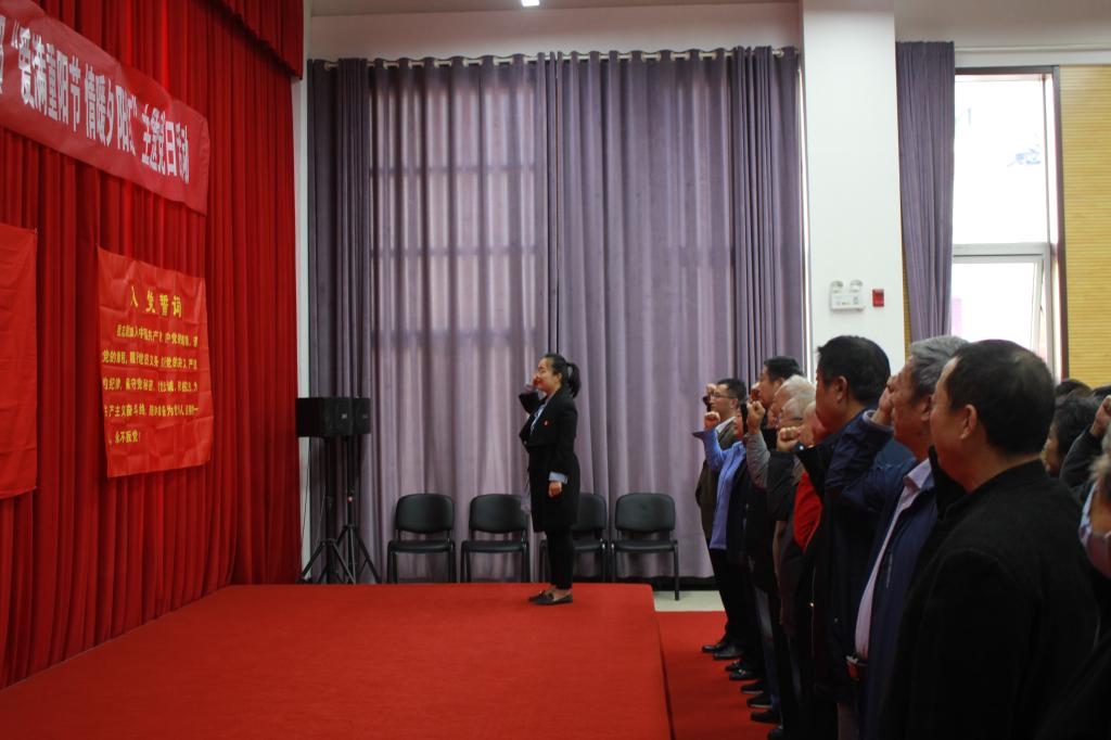 活动在“重温入党誓词”中拉开序幕。在鲜红的党旗下,全体党员庄严宣誓:“我志愿加入中国共产党,拥护党的纲领……随时准备为党和人民牺牲一切,永不叛党。”通过重温入党誓词,再次接受了心灵的洗礼,进一步增强了宗旨意识,强化了使命担当。宣誓后,学生党员代表为离退休老党员赠送了重阳节礼物。