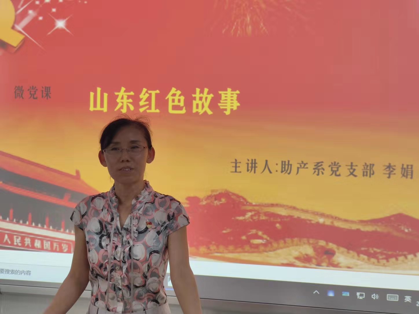助产系党支部书记李娟以《山东红色故事——孟良崮战役》为题,讲述华东野战军在孟良崮与国民党军队精锐展开的激烈战斗。牢记人民是胜利之本,重视人民的力量,贯彻党的群众路线、秉承党的群众观点,是我们工作中必须始终坚持的行动准则。