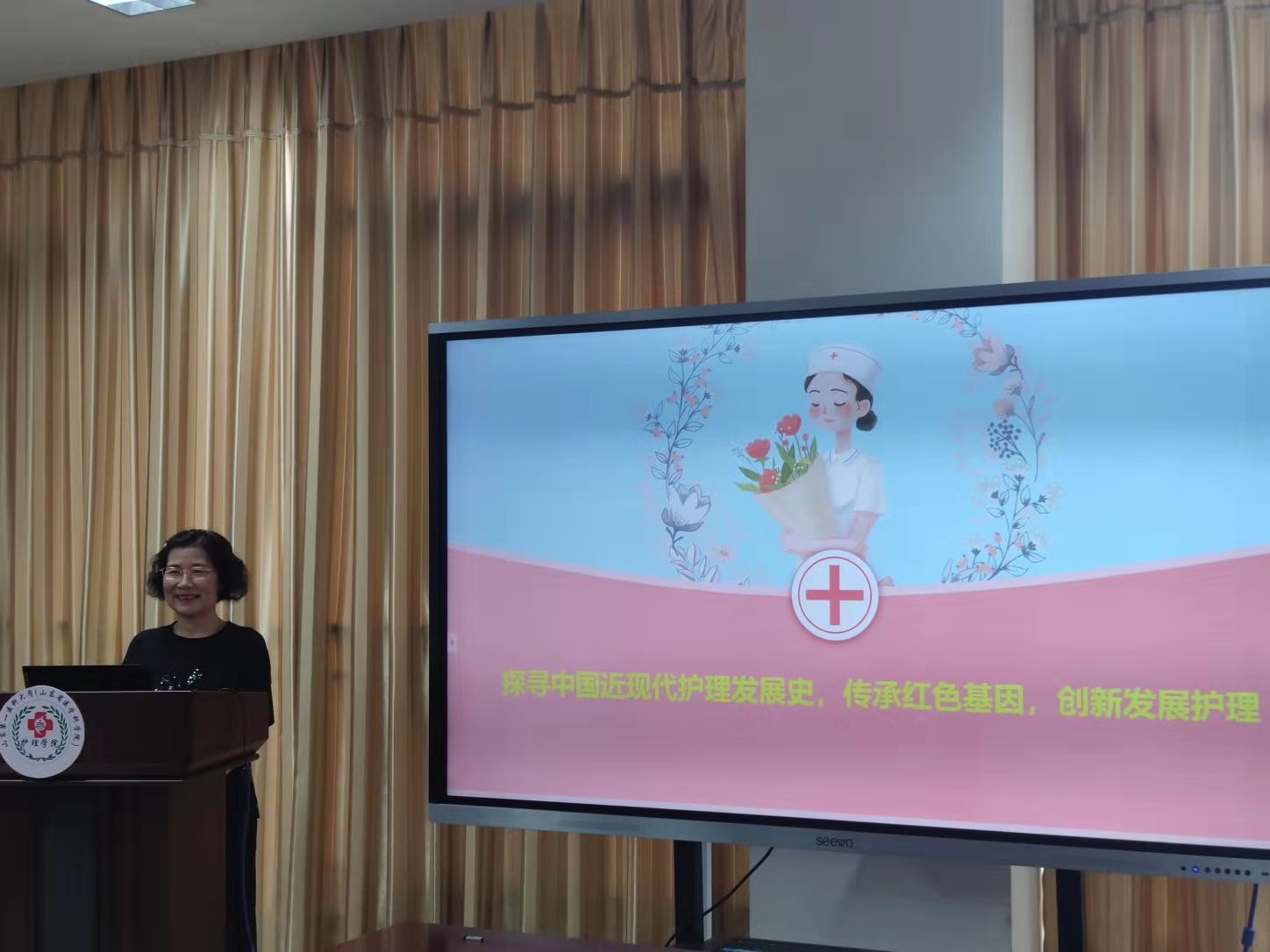 院长柳韦华以《探寻中国近现代护理发展史 传承红色基因 创新发展护理》为题,带领大家回顾了我国护理的发展史和红色基因传承。中国护理走过的历程,经历曲折和艰辛。习近平总书记强调,护理工作是卫生健康事业的重要组成部分,全社会都要理解和支持护士。希望广大护理工作者秉承优良传统,发扬人道主义精神,再接再厉,真情奉献,为健康中国建设、维护世界公共卫生安全不断作出新的贡献。