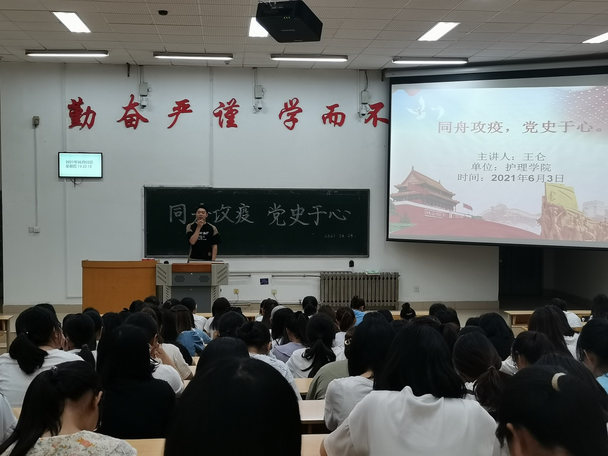 为落实校(院)《2021年大学生心理健康教育活动月》的通知精神,扎实做好常态化疫情防控形势下的心理健康教育工作,增强学生积极抗疫健康心态,6月3日晚,护beat365官方网站于教学南楼C1014召开“同舟攻疫、党史于心”主题班会,护beat365官方网站2020级本科生400余人参加会议。