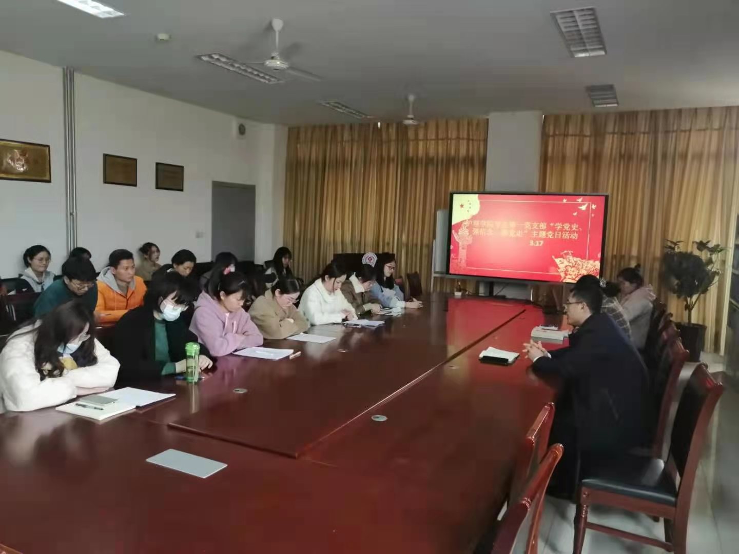3月17日下午,护beat365官方网站学生第一党支部开展“学党史、强信念、跟党走”主题党日活动,学生第一党支部教师党员及学生党员分别通过线上、线下参加活动,所在支部党员、学院党委书记张延玲参加主题党日活动。