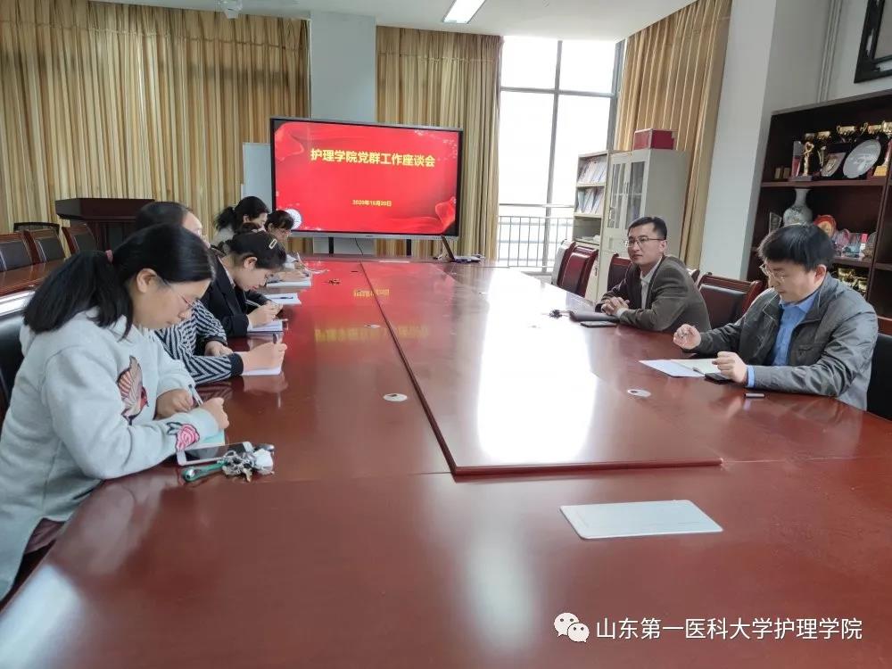 为更加广泛凝聚学院发展共识,搭建党务、群团组织沟通交流平台,建立完善党群一体化发展体制机制,近日,护beat365官方网站召开党群工作座谈会。学院党委书记张延玲、副书记林桦、各党支部书记、各工会、妇委会组长等参加会议。