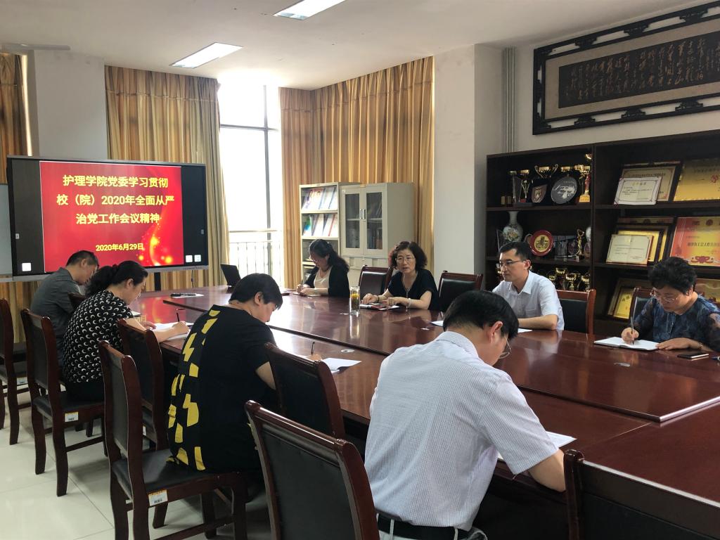 6月29日,护beat365官方网站党委召开会议,学习传达贯彻校(院)2020年全面从严治党工作会议精神。学院党委书记张延玲主持会议。