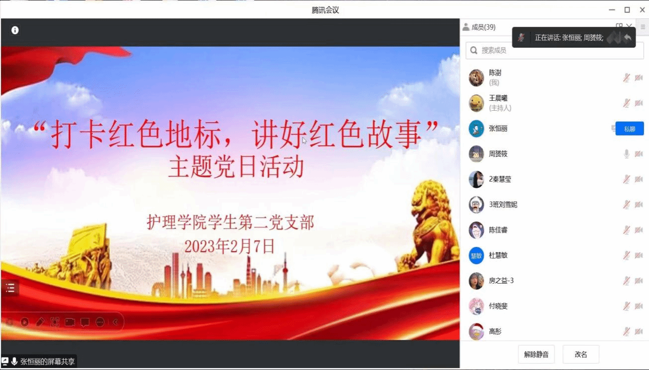 2月7日,护beat365官方网站学生第二党支部开展“打卡红色地标 讲好红色故事”分享会暨主题党日活动。学院支部党员、学院党委书记张延玲,支部党员、辅导员王雯雯和学生党员参加活动。党支部书记张恒丽主持分享会。