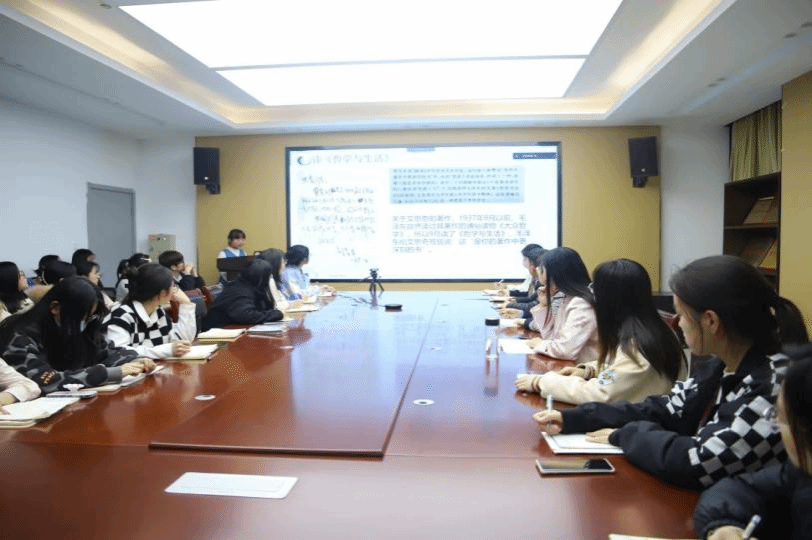 党员吴雅珍带领大家共学《毛泽东读书生涯》第四章节——延安读哲学的内容。从1936年到1941年,毛泽东同志仔细研读了七本马克思主义著作,书上密密麻麻的都是批语和标注。毛泽东同志学马列,主张学习马克思主义的立场观点和方法,并主张发展马克思主义。他在党的六届六中全会上,向全党发出开展马克思主义学习竞赛的号召。吴雅珍同学呼吁大家在生活中放下手机坚持阅读,让阅读成为一种习惯,做到努力学习、刻苦学习,不断增进自己的知识储备。