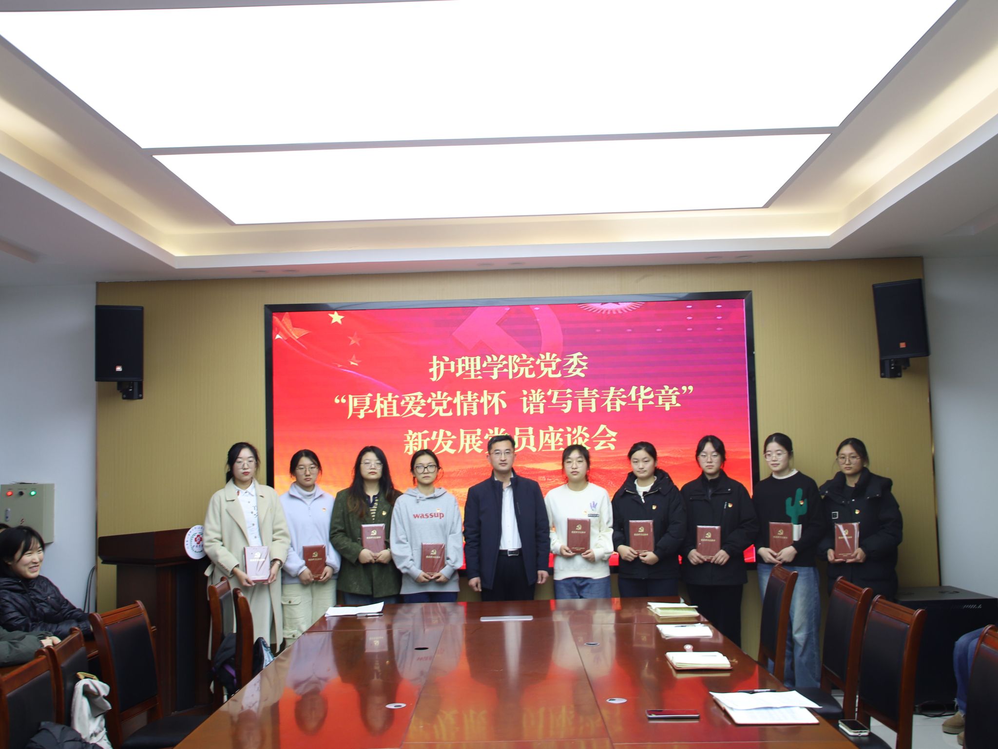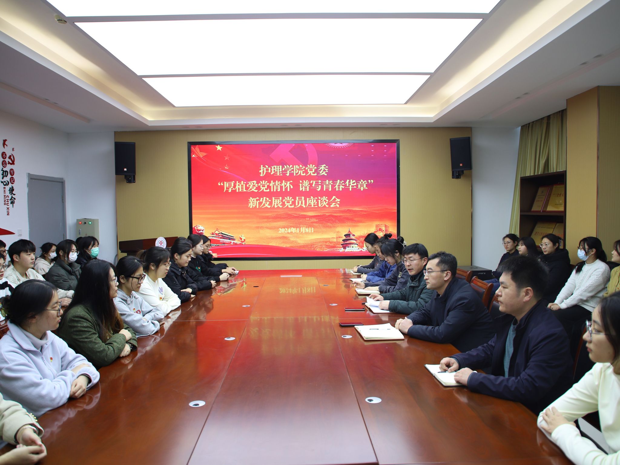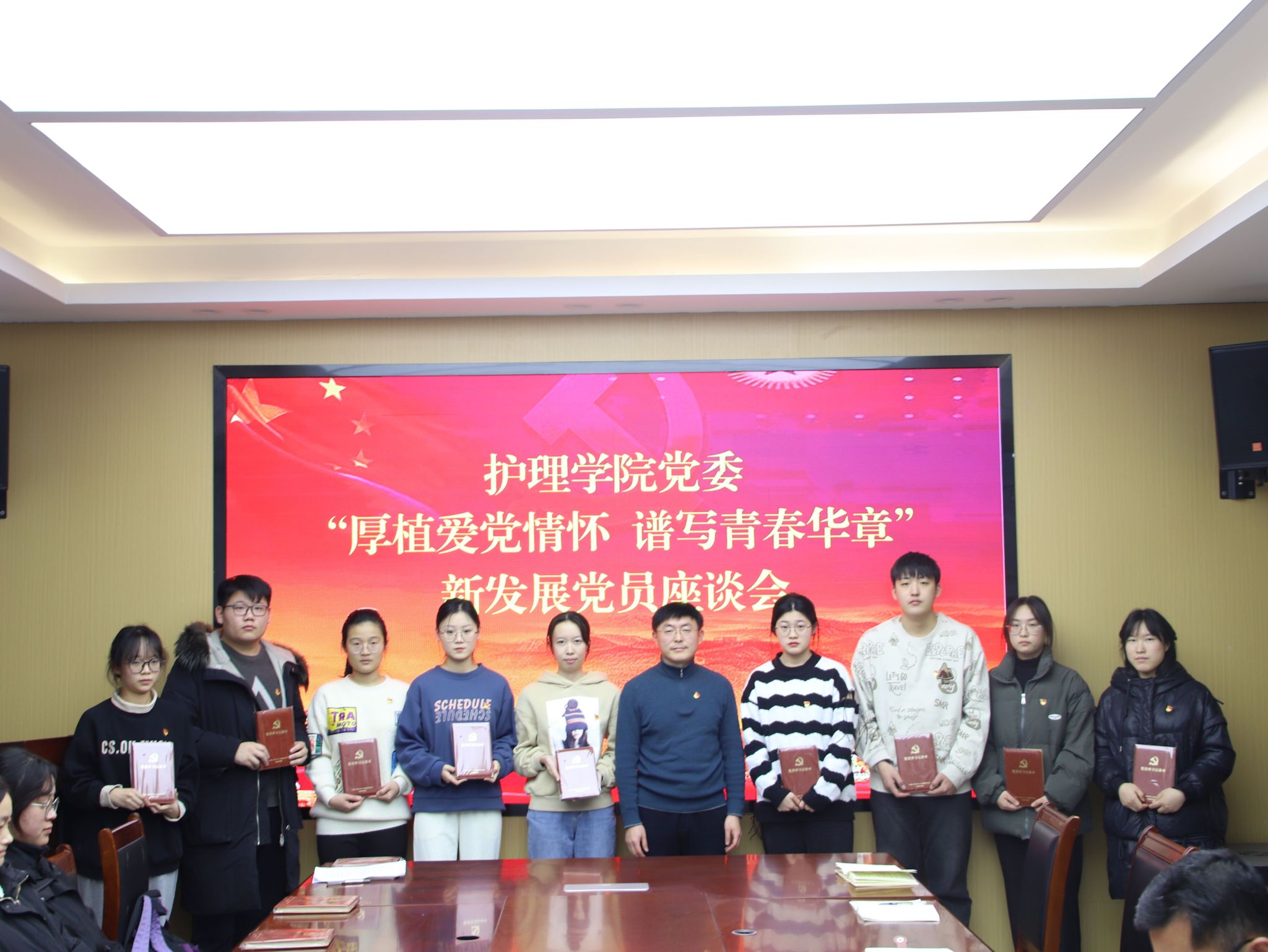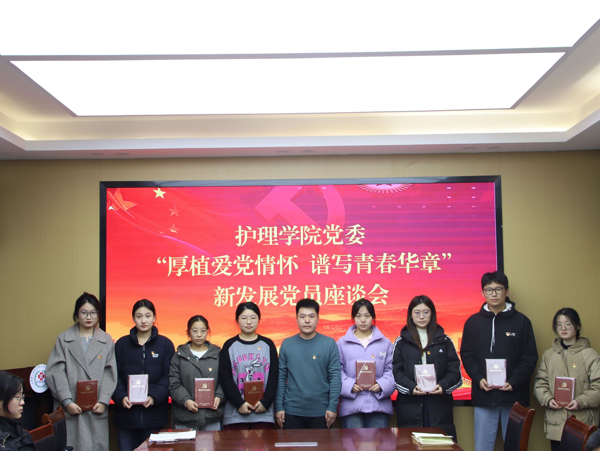 为深入学习贯彻习近平新时代中国特色社会主义思想,厚植爱党情怀、涵养进取品格,1月8日,护beat365官方网站党委开展“厚植爱党情怀 谱写青春华章”新发展党员主题座谈会。学院党委书记张延玲参加活动,副书记林桦主持。