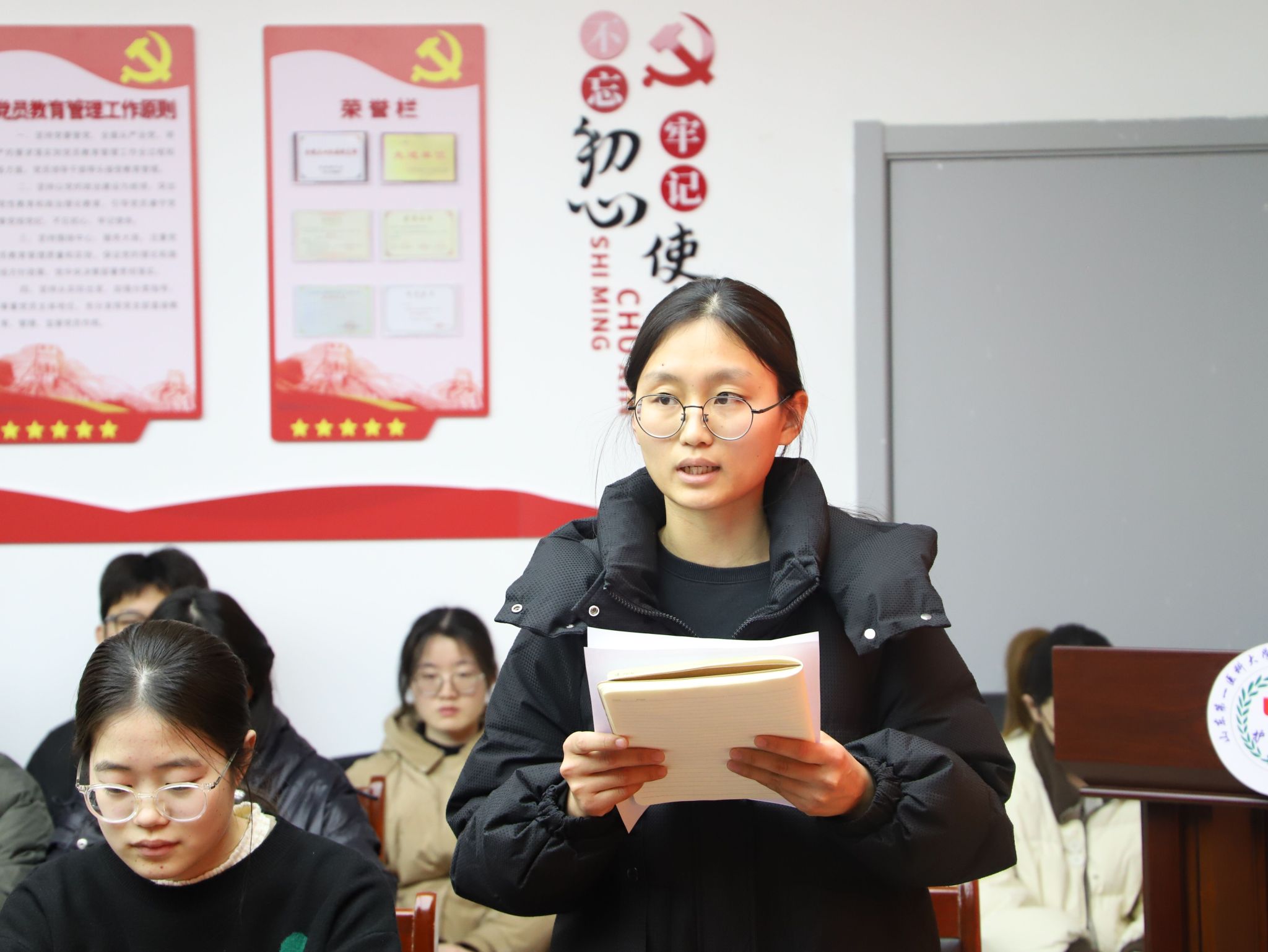 活动开始,张延玲祝贺新发展党员加入中国共产党,带领学院老师为新发展党员送上学院党委精心定制的“党员学习笔记本”,激励大家随时记录预备期期间的学习心得体会、心得感悟,内生力量、外在发展。