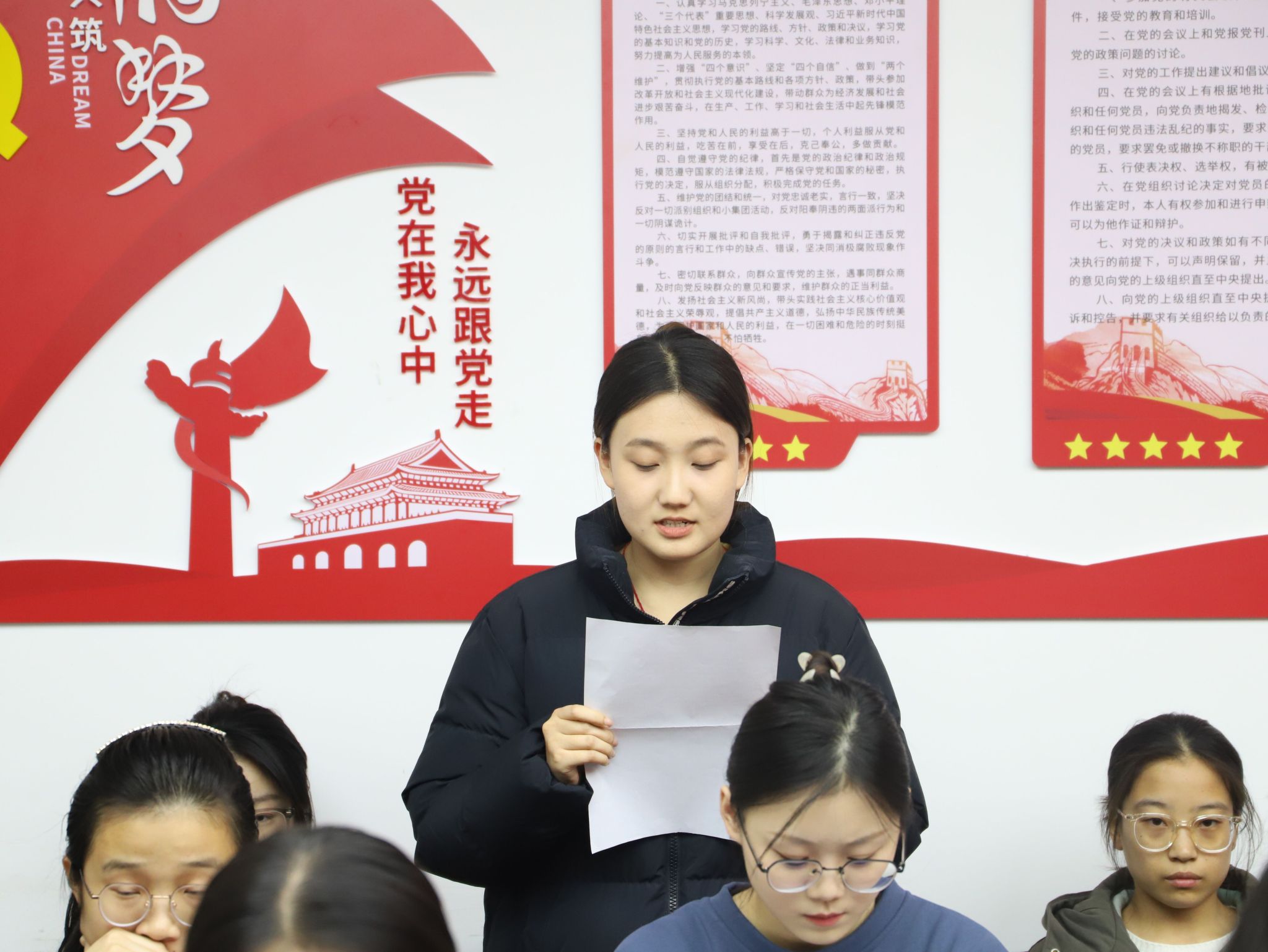 张延玲充分肯定了与会新发展党员的成长进步,并提出四点希望和要求。一要“记得初心”,厚植爱党爱国情怀。作为学生党员,要坚定信仰,认真学习习近平新时代中国特色社会主义思想,在学习、工作和生活各方面发挥先锋模范作用,特别是要做好理论学习的深化、内化、转化文章。二要“闻得书香”,乐学善思明礼自信。要立足成长成才,发现和改正自身的不足,把组织发展作为推动自身成长的催化剂,努力练就学习“硬本领”。三要“嚼得菜根”,百事可做自找苦吃。要有“自找苦吃”的精气神,面对挫折困难要敢干会干、善作善成,要有系统观念,做到统筹兼顾。四要“行得从容”,理性平和收获丰盈。党员同志要有要充满正能量,面对任何事情都要努力保持乐观心态,坚信“奋斗不一定能带来成功,但肯定会带来成长”,坚信“相信”的力量。最后,张延玲强调,奋斗是青春最亮丽的底色,拼搏是青春最美好的篇章,有奋斗才有收获,希望大家都能在新的一年有更多进步,有更大收获。