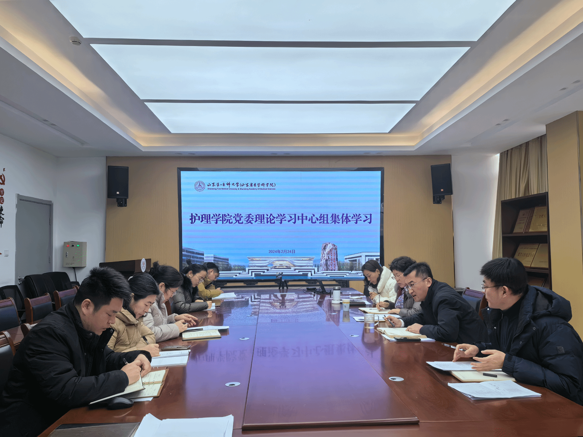 2月24日,护beat365官方网站党委理论学习中心组专题学习校(院)管理人员培训班会议精神。学院党委书记张延玲主持学习。