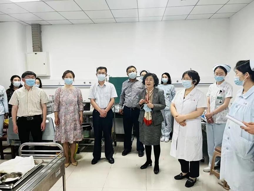 为进一步了解省赛培训情况,关心关怀参加省赛选手,5月18日,学院同校(院)医院管理与疾病控制部领导集体赴第一附院看望正在积极训练、全力备战省赛的师生。医控部副部长李晓冰、学院院长柳韦华、党委书记张延玲、副院长陶如、副书记林桦等参加,第一附院副院长许翠萍、护理部主任季红等陪同参加活动。