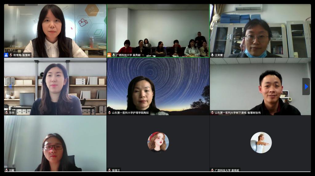 会上,范华与文玉萍分别介绍了两校的基本情况,陶如和刘正芳分别就护beat365官方网站(系)的基本情况、一流课程建设情况、教材建设等教研成果进行了介绍。课程负责人王笑蕾介绍了我校《内科护理学》课程的基本情况、师资队伍情况,并对课程建设、教学特色等做了详细介绍。莫秀献老师介绍了广西科技大学《内科护理学》课程的师资队伍、学生情况、同步课堂需求等情况。双方还就同步课堂的时间安排、教学内容、教学设计等进行了深入讨论,并在共建虚拟教研室、专业建设和课程建设等方面达成合作共识。