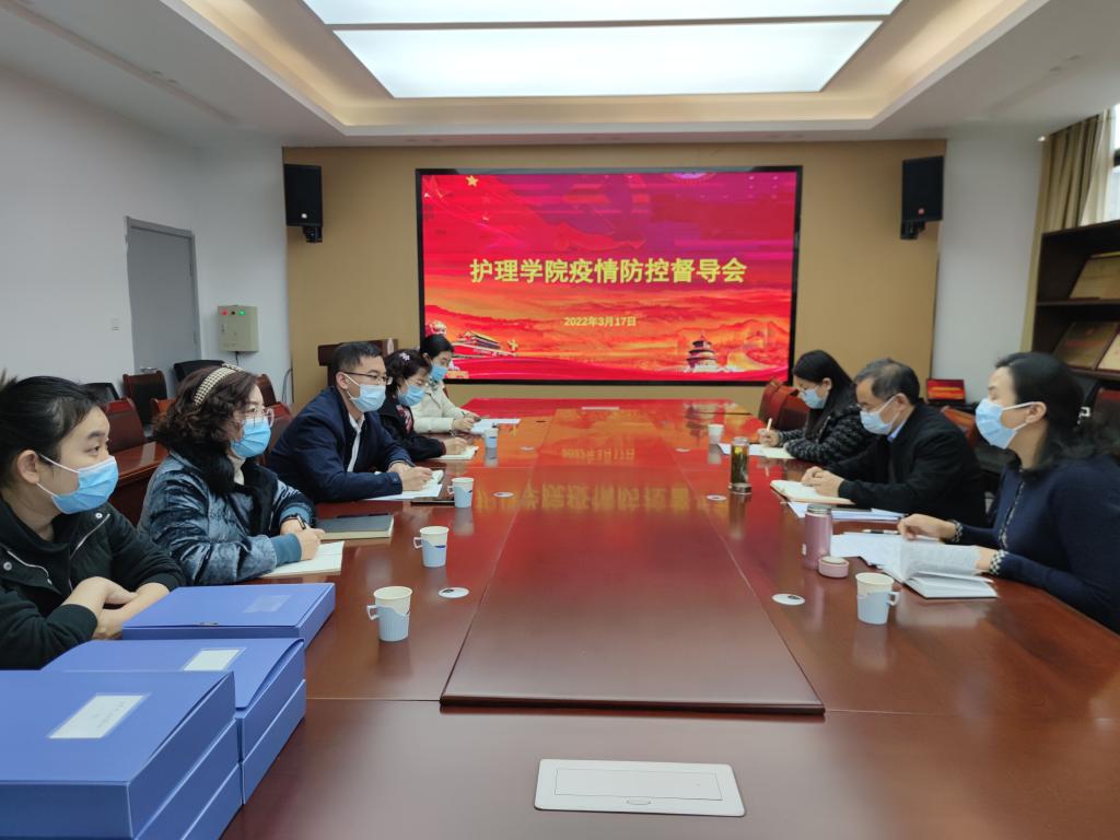 3月17日,校(院)副校(院)长王宇轩,国有资产与实验室管理部部长盛俊杰,计划财务部副部长艾琦一行到护beat365官方网站对疫情防控工作进行督导检查。护beat365官方网站院长柳韦华、党委书记张延玲,学院办公室老师及辅导员参加活动。