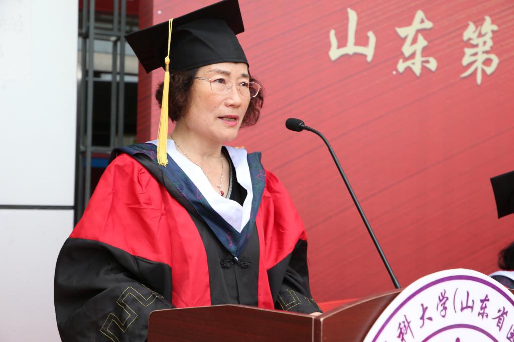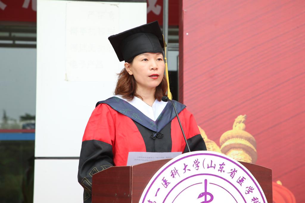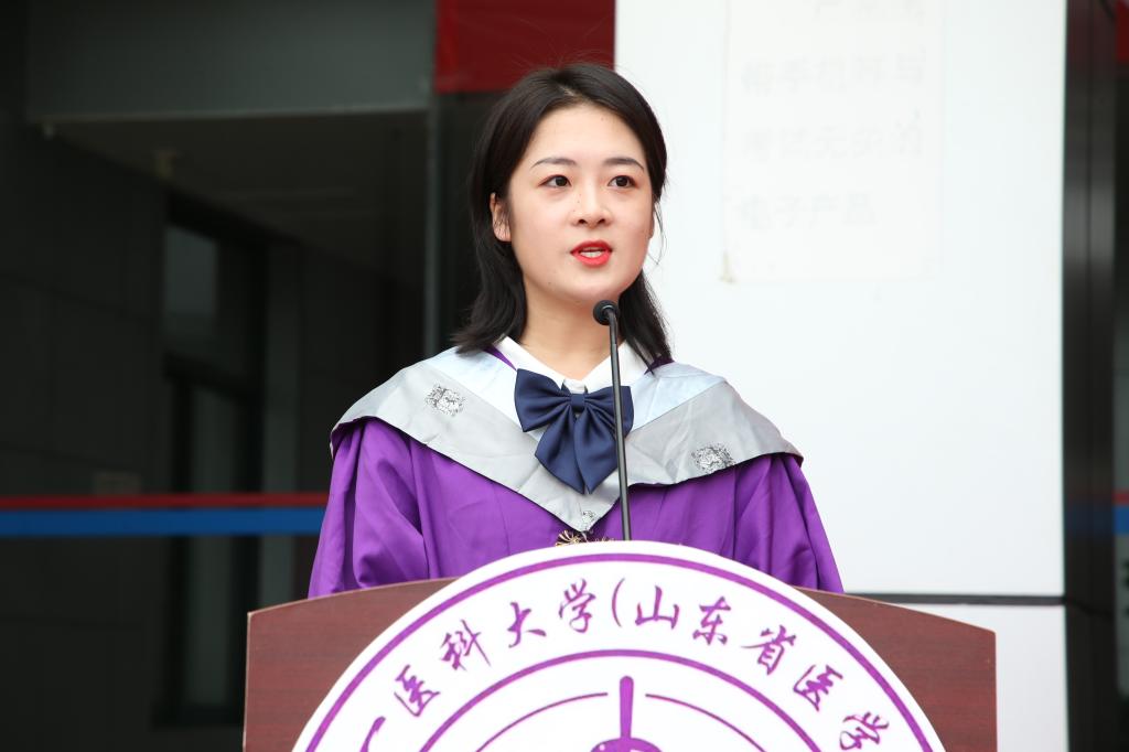 学院高英丽老师作为教师代表回顾了2021届毕业生在校生活的点点滴滴,对正处于人生重要转折点的毕业生们给予叮嘱和期望。省级优秀毕业生代表闫畅同学进行了发言。她说,四年来在山一大学会了分析与思考,合作与竞争,继承与创新,深切表达了对老师的感激之情和对同学、朋友的不舍之情以及即将踏入社会的坚定信心。