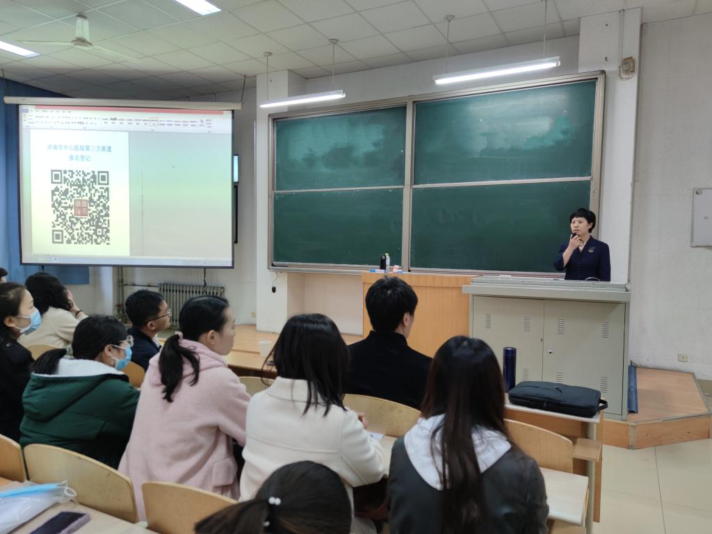 3月24日,附属中心医院(济南市中心医院)护理部杜红霞主任一行来院对接人才招聘工作。学院党委书记张延玲、招生就业部副部长王尧和学院辅导员参加活动。