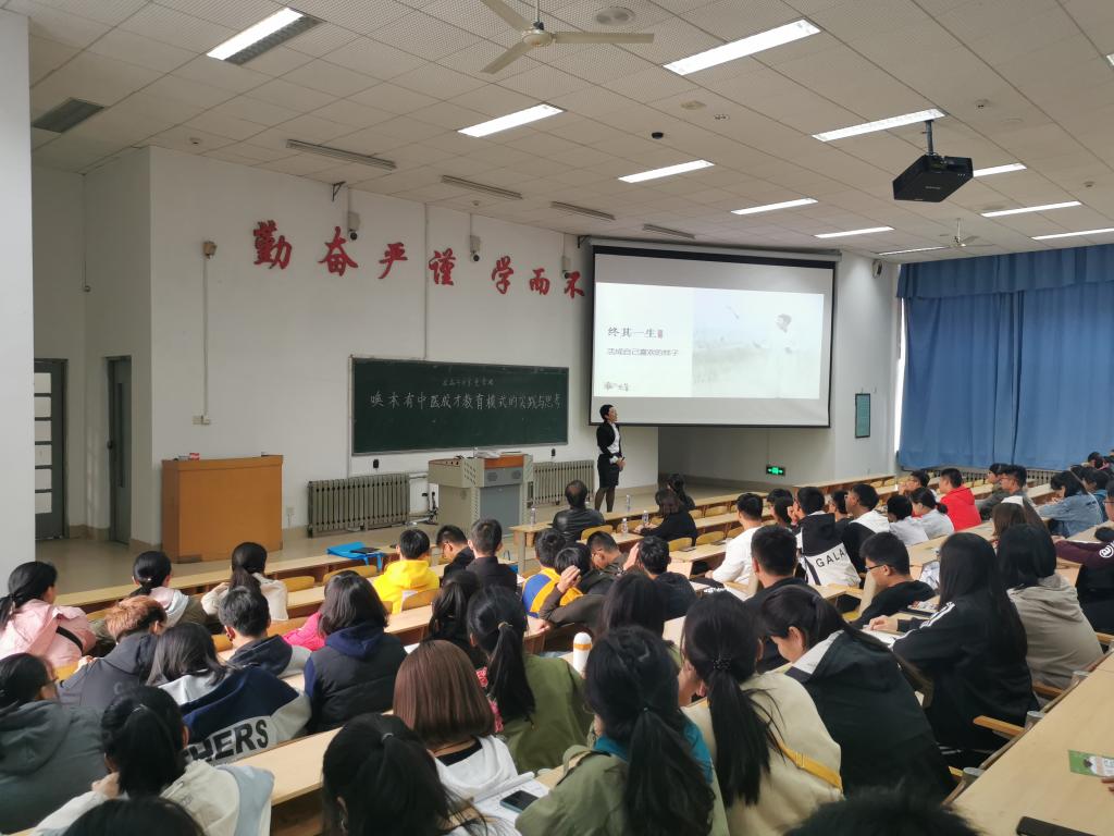 闫芳以“我的故事”、“我的新三观”,向同学们分享了自己人生经历的“流浪旅程”和创业历程及自己从自身、从实践中领悟到的人生纯真和自然的真谛,通彻而不世故,带给同学们极大的人生启迪。在谈到“遇见”为主题时,与同学们进行热烈的互动,向现场同学送出了本人所著的《不抱怨》一书,活跃现场气氛。