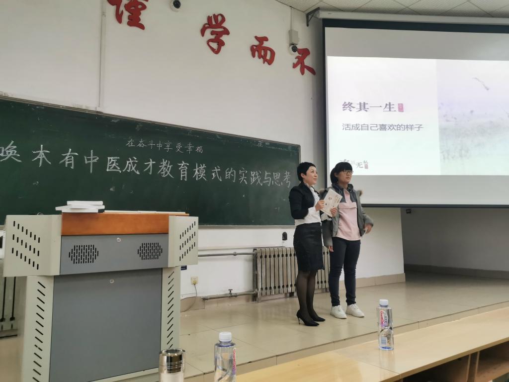2019年10月17日下午,护beat365官方网站学院邀请了河北省唤本有职业培训学校董事长闫芳女士,在教学南楼C1014教室,为2019级护理学本科班400余名同学,作了以“在奋斗中获得幸福”为主题的演讲报告。