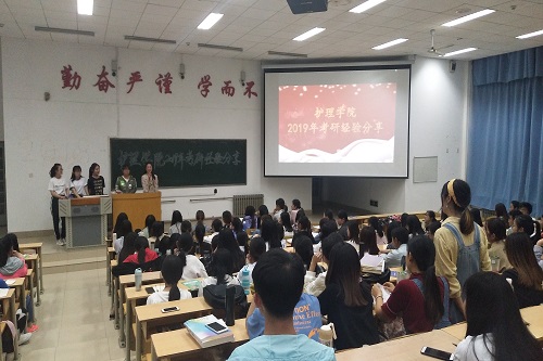 5月14日晚,护beat365官方网站在教学南楼C2010、C2017教室举办了考研经验分享交流会,我院优秀考研学生代表马慧玲、郑舒悦等七位同学和大家分享了个人考研成功经验。准备参加2020年考研以及2017级本科部分学生共500余人参加了交流会。