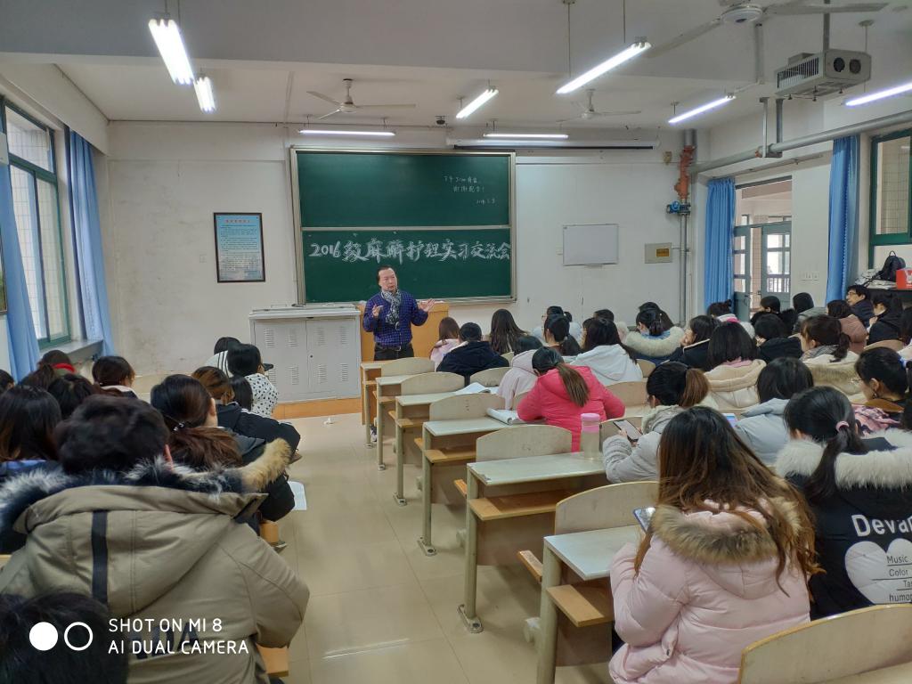 1月3日下午,护beat365官方网站在教学北楼A1007教室召开2016级护理学(麻醉方向)实习生交流会。护beat365官方网站副院长吕春明就2018-2019学年第二学期麻醉护理实习问题进行了主题宣讲。辅导员朱宁及2016级护理学本科麻醉方向全体学生参加了此次会议。