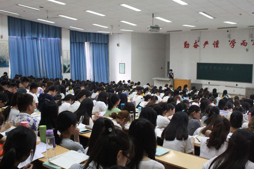 6月15日下午,护beat365官方网站在教学南楼C2024室召开2017年实习教育大会。此次会议邀请了泰安市中心医院护士长亓琴为我院应届实习生400余人进行宣讲教育。 首先,护beat365官方网站教学秘书万学英老师对实习计划和安排进行了详细的讲解,提出了对应届实习生的管理要求,并对相关实习资料的填写做了详细的解读和说明。随后,亓护士长为实习生讲解了实习期间学习、生活和工作中的注意事项。强调临床实习是基本理论与临床实践相结合的重要途径,是护理专业学生必须经历的重要阶段,希望全体实习同学以饱满的热情投入到实习工作当中。她嘱托大家在实习期间要增强时间观念和责任意识,树立严谨规范的工作态度,加强人际沟通与交流,扎扎实实地学到真本领,争取早日成为一名合格的护理工作者。