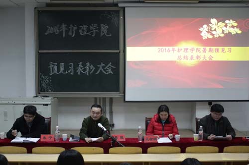 在我校圆满完成教育部护理学本科专业认证工作之际,11月24日下午,护beat365官方网站在教学楼南楼C1001举办了2016年暨第四届暑期预见习总结表彰大会。护beat365官方网站党委书记秦斌和学团老师参加了会议。