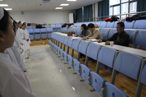 3月23日下午,泰安市中心医院护理部主任翟荣慧、副主任卢爱霞来护beat365官方网站面试实习生。护beat365官方网站副院长吕春明、学工办主任王有娟热情接待了客人。