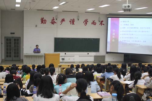 为了新生尽快适应大学生活,在举办了新生入学教育“第一课”后,我院于9月24日晚上在教学南楼C2017继续举办2014级新生入学教育,此次教育的内容是学籍、考务,图书借阅和大学生安全教育等。 图书馆副馆长孙守军老师就图书馆的设置、馆藏、借阅及图书馆的使用等方面向同学们做了详尽说明;学籍科薛卫京老师就学籍、考务、毕业学位等方面向同学们做了细致讲解,让同学们在入学起点就对大学的学习生活有了一个清晰的认识。